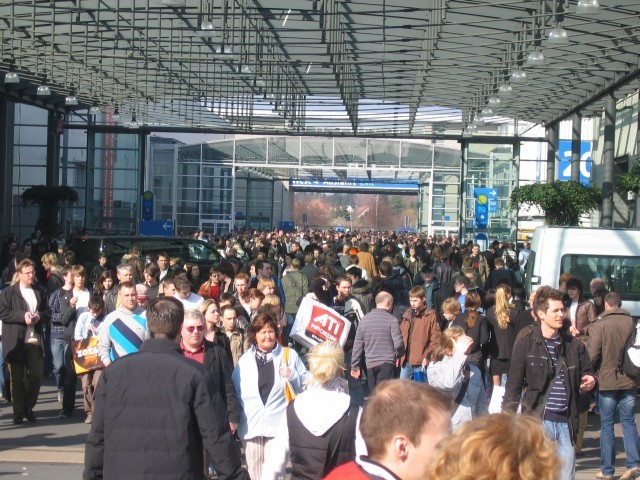 Menschenmassen zwischen den Hallen