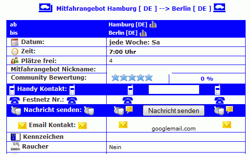Quelle: Mitfahrangebot Mitfahrangebot.de