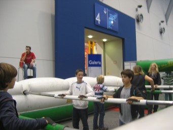 WeyKick habe ich bereits schon im vergangenen Jahr vorgestellt: ein Tischfußballspiel, in dem die Spieler von unten mit Magneten geschoben werden. Auch dieses Jahr faszinierte mich das Spiel. Weniger begeistern konnte mich allerdings der Tennis-Aufsatz. Hier gilt es, den Ball über eine Rampe ins gegnerische Spielfeld zu schießen — jedoch landeten die meisten Schüsse im Raum. Wer unter den Dresdnern Mitlesern die Fußballvariante ausprobieren möchte: das Triangel hat so ein Exemplar!