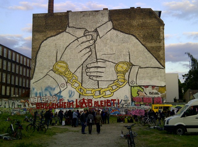 Diese Bemerkung scheint jedoch weltfremd zu sein: Bei der bevorstehenden Bebauung kann davon ausgegangen werden, dass beide Brandwände nahezu vollständig angebaut werden. Es wäre also eh nichts von dem Kunstwerken übrig geblieben (siehe Konzeptstudie mit drei Entwürfen). „Liebe Interessenten: Und hinter dieser Außenwand befindet sich noch einzigartige Kreuzberger Straßenkunst!”