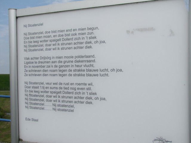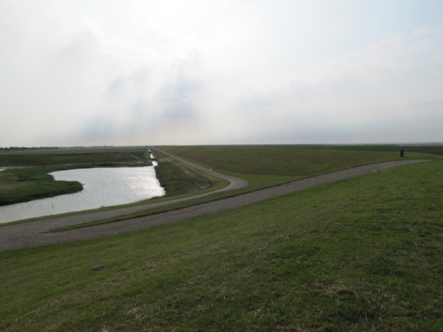 Die ersten 20 km gingen am Deich des Dollard vorbei. Dabei entdeckte ich ein sehr hilfreiches Hinweissystem. Anstelle von Orten geben sie Knotenpunkte mit Nummern an. An den Strecken zwischen zwei Knoten gibt es Entfernungen. Im Grunde kann ich meine Tour in den Niederlanden heute wie folgt beschreiben: