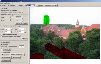 Wenn ein Bild zu groß war, konnt man bisher entweder einen Ausschnitt verwenden oder skalieren. Ein relativer neuer Ansatz der Bildbearbeitung ist das »Retargeting« — oder zu gut Deutsch: inhaltssensible Bildskalierung. Durch einen speziellen Algorithmus lassen sich damit Bilder so manipulieren, daß zum Beispiel zentrale Objekte stärker hervorgehoben werden. Wird beispielsweise ein Bild verkleinert, verkleinert sich in erster Linie der relativ unspektakuläre Hintergrund.