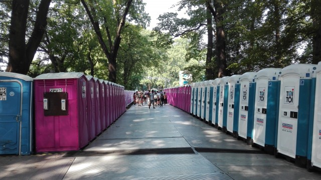 Ferner bestand die große Sorge, dass überall wild in den Park gepinkelt wird. Ich stelle mal die These auf, dass an einem üblichen Wochenende, wo nur ein Zehntel davon im Park ist, weitaus mehr Menschen in die Büsche strullen. Ich selbst habe nur einen Fall gesehen, wo jemand einen Bauzaun angepinkelt hat (aber ich wollte ja abschalten und nicht den Hilfssheriff spielen). Die Toilettenhäuschen waren wirklich reichlich vorhanden: