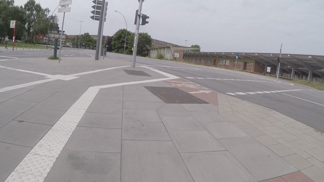 (In der Gegenrichtung noch schlimmer, weil Fußgänger keinen Platz an der Ampel Fußgängerampel haben. Zudem noch holpriger)