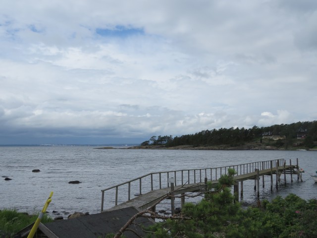 Nachdem der Weg etwas holprig wurde – und dann an einer viel befahrenen Straße geführt wurde, suchte ich eine andere Strecke, über Karlshus. Der beste Teil war neben der Autobahn eine gute Straße. So bergab, dass man etliche Kilometer den Tacho über 30 km/h hatte. Mit wenig Verkehr.