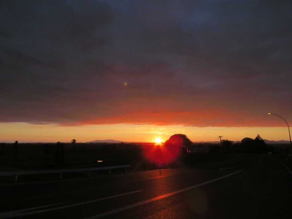 Zwischen den Wairere-Wasserfällen und Rotorua erlebten wir einen sehr bombastischen Sonnenuntergang.