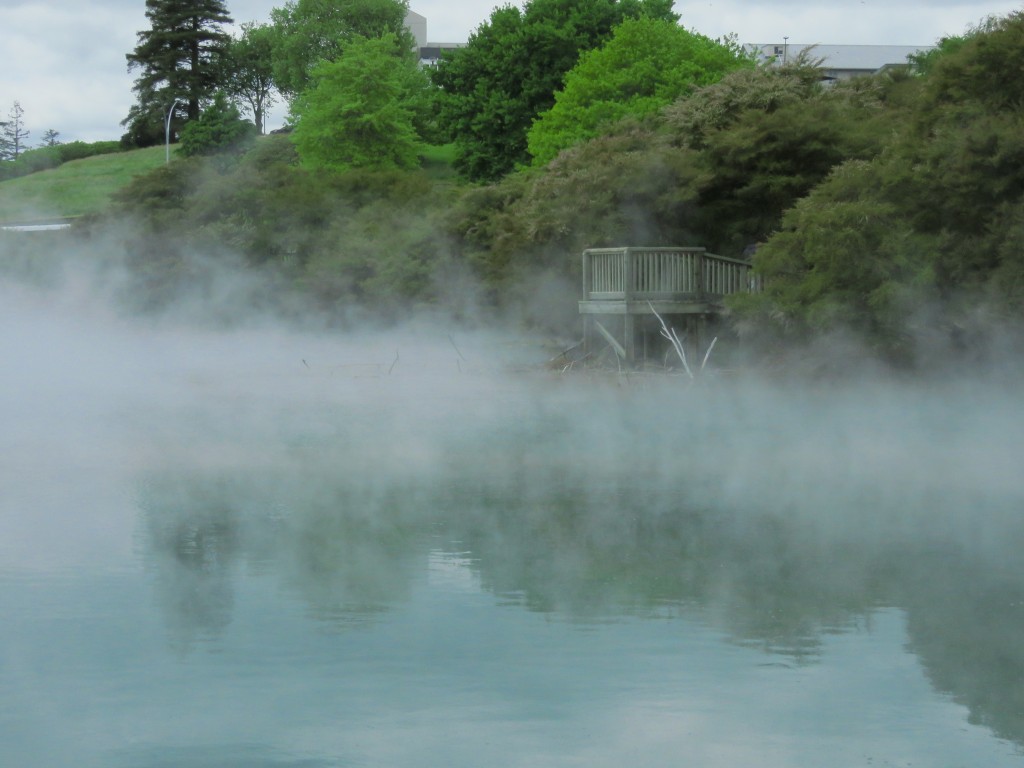 Der Kairau-Park ist ein Stadtpark in der Nähe von Ohinemutu. Besonders markant für seinen Thermalen See. Über ihn führt ein Holzsteg. Zugegebenermaßen ist sehr angenehm warm, darüber zu schlendern.