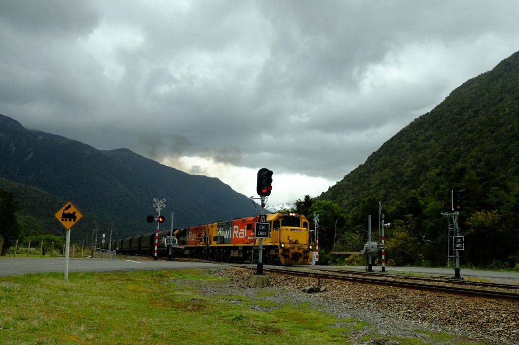NZ: State Highway 73 (bei Otira) mit Kiwi Rail