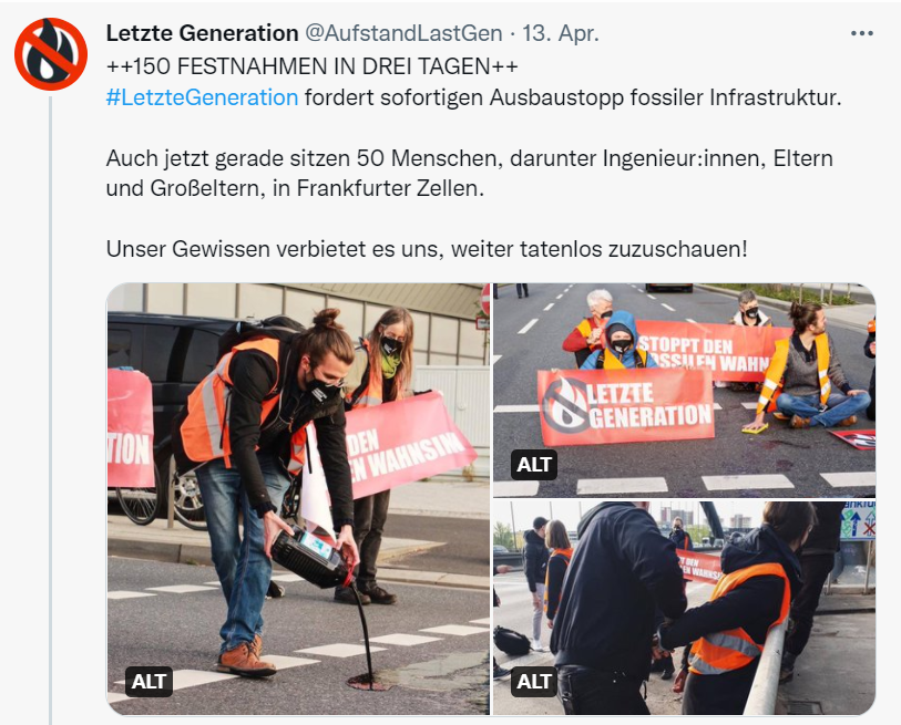 In einem anderen Beitrag ist zu sehen, wie ein Aktivist Öl auf die Fahrbahn verteilt: