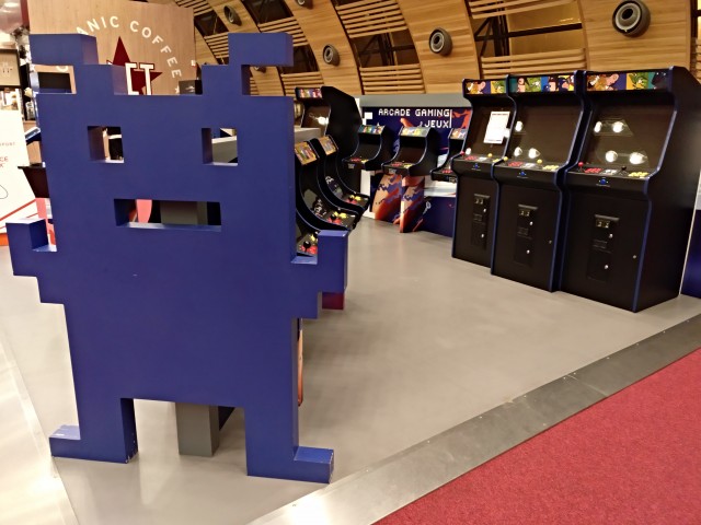 Nicht nur Sitzbänke, auch Spiele und Computerspielecken gab es in der großen Wartehalle. Vor allem aber alte Arcade-Spiele: