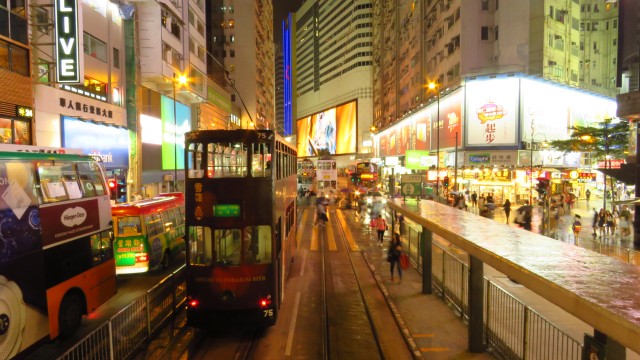 Später fuhren wir mit der Doppelstock-Tram. Wenn nicht die Bezahlung mit der Octopus-Card wäre, könnte man meinen, dass sich an Zügen und Gleisen seit 1980 hundert Jahren nichts mehr verändert hätte. Dennoch wird die Bahn rege genutzt – vielleicht, weil der Fahrpreis günstiger ist, als die fast parallel verlaufende U-Bahn „Island Line” eine Etage tiefer.