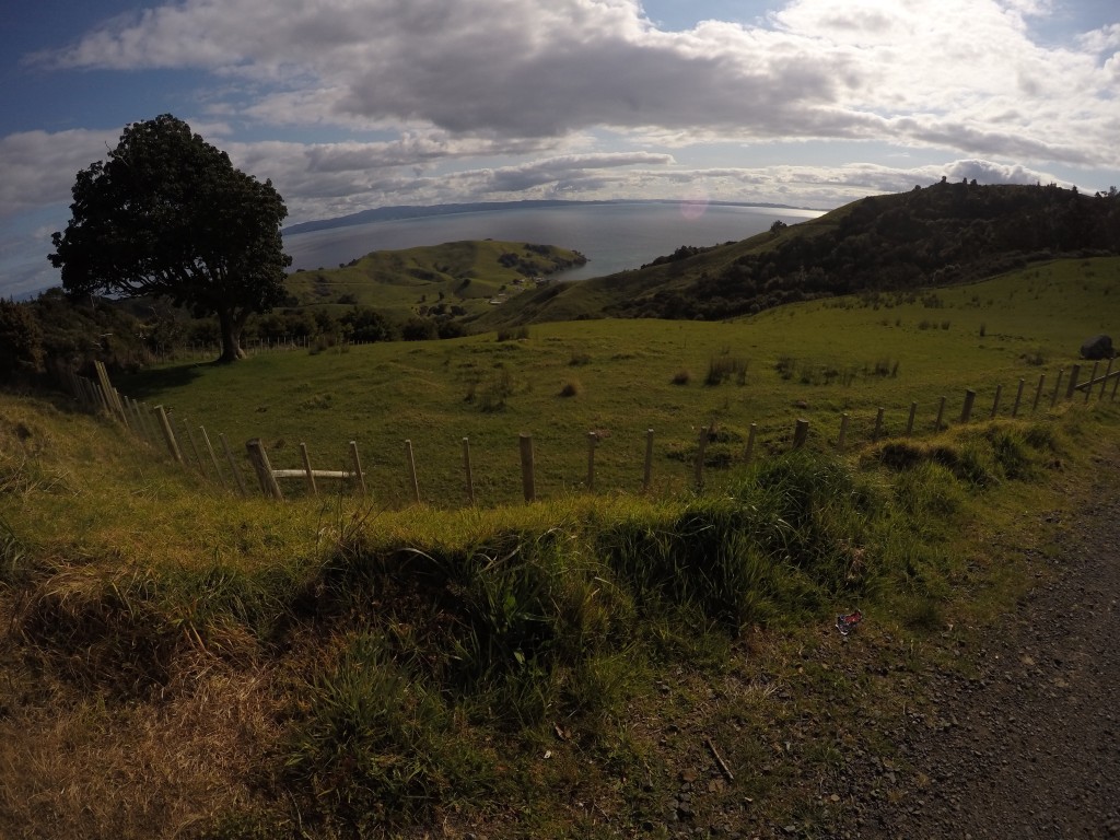 Das Gebiet südlich der Firth of Thames war sehr flach, die Straßen vom State Highways 2 waren nahezu kerzengerade. Und so blickten wir auf die Gebirgszüge der Coromandel-Halbinsel.