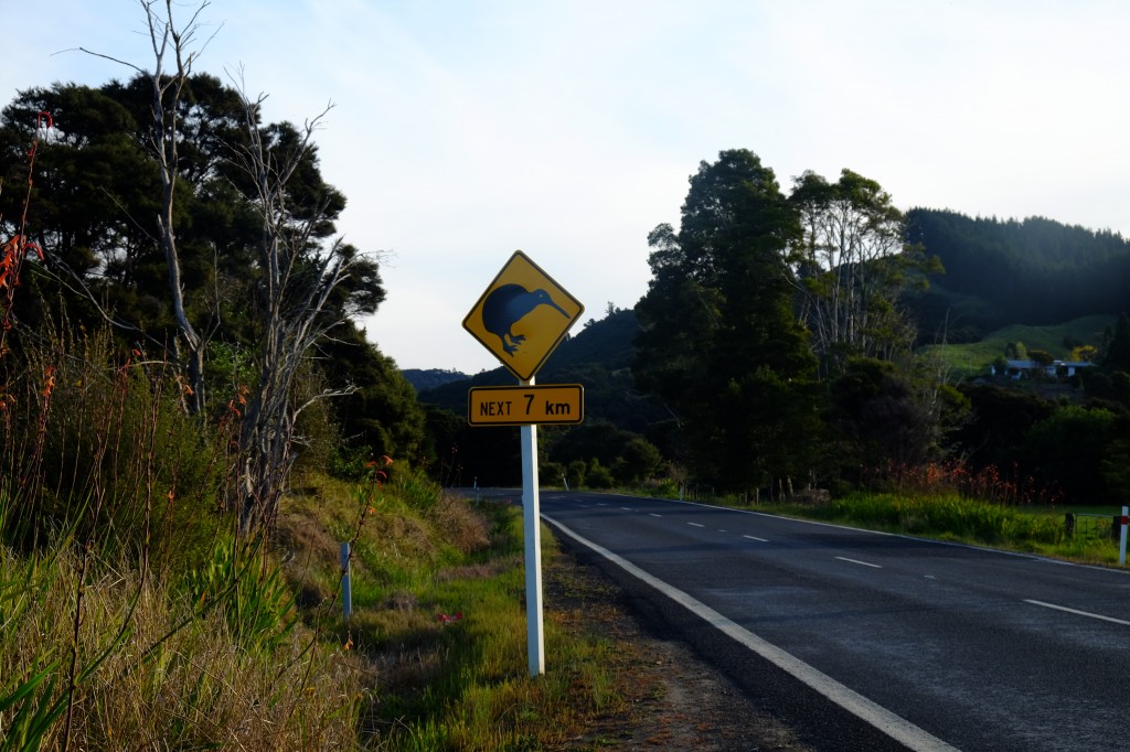 Danach folgten etliche Serpentinen bis nach Kuaotunu. Hinweisschilder warnten uns vor Kiwis. Doch gesehen haben wir keine. Auch nicht in der Dämmerung.