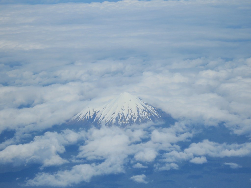 Nach der halben Flugzeit sahen wir den Vulkan Mount Taranaki im Egmont National Park, eines der Ziele, die wir auf der Reise leiter nicht bereisen konnten. Dennoch ein toller Anblick im Wolkenmeer: