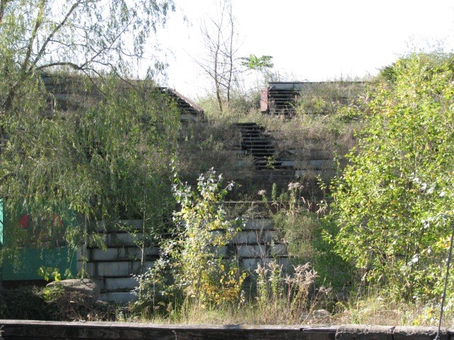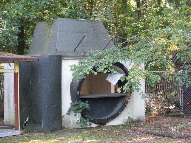 Zur Führung wurde gesagt, die meisten Fahrgeschäfte könnten ohne größeren Aufwand wieder reaktiviert werden, wie bspw. die Wildwasserbahn. Dagegen gibt es Attraktionen, die noch nicht fertig gebaut worden sind und nun trotzdem vor sich hin rosten – und von Zeit zu Zeit rosten die Gondeln ab und fallen runter. Viele Brücken, vor allen zur Insel (da steht das Riesenrad) sind bereits eingebrochen. Andere Dinge erfreuen sich eher dem Vandalismus wie das Umschmeißen der Dinos. Naja, und hin und wieder brennen auch mal Strohhütten. So im groben sieht die Welt im Spreepark aus: