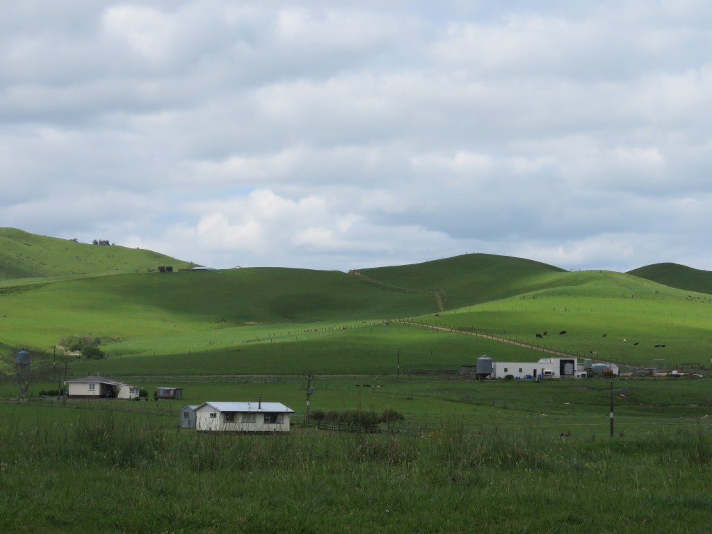 Das Gebiet südlich der Firth of Thames war sehr flach, die Straßen vom State Highways 2 waren nahezu kerzengerade. Und so blickten wir auf die Gebirgszüge der Coromandel-Halbinsel.