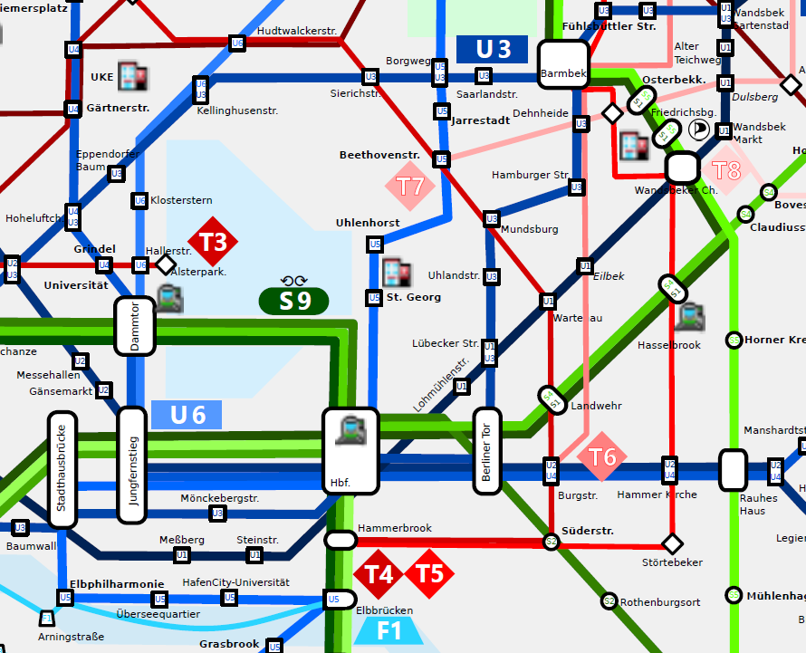 Entwurf eines Tram-Netzes für Hamburg (Grafik)