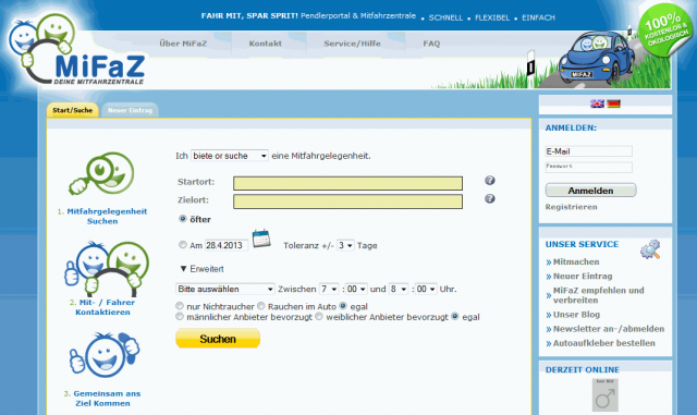 Anmerkung vom 24.06.: Der Anbieter hat sich einen zweiten Namen zugelegt: mitfahren.de. Identisches Portal, identische Einträge. Namen sind bekanntlich Schall und Rauch.