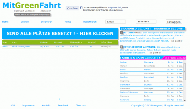 | MitGreenFahrt | Ich finde eigene Angebote nicht | 5 (Lieber nicht!) | – | – | 05.05.2013 |