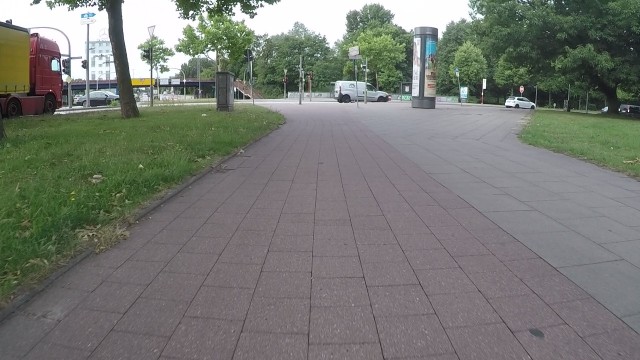 (In der Gegenrichtung noch schlimmer, weil Fußgänger keinen Platz an der Ampel Fußgängerampel haben. Zudem noch holpriger)