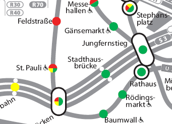 Zuvor hatte bei mir Hamburg den Ruf als Musterbeispiel der autogerechten Stadt in Deutschland. Verglichen mit der Stadtgröße ist das Liniennetz der (schienengebundenen) öffentlichen Verkehrsmittel überschaubar. Hamburg ist mittlerweile die größte Stadt der Europäischen Union, die über keine Straßenbahn verfügt. Schuld ist – wie so oft – die SPD. Es gibt U-Bahnen, die auch zu Nebenzeiten überfüllt sind. Es gibt ein ausgedehntes Busnetz – mit Bussen für 1. und 2. Klasse. Es gibt für den öffentlichen Nahverkehr ein völlig beklopptes Tarifsystem, das selbst gebürtige Hamburger nicht erklären können.