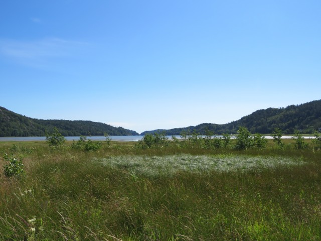 Da die Küste hinter Hamburgsund zerklüftet und ich nicht jede ausfahren will, kürzte ich über den Berg ab. Ich mag solche Berge: man fährt bzw. teilweise schiebt man das Rad einmal hoch – und kann sich dann ausrollen lassen. So war es hier.