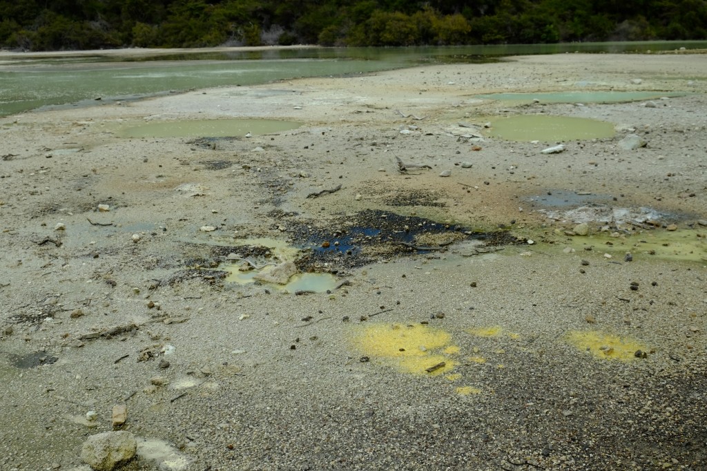 Die zweite Etappe war das Thermal Wonderland. Dies ist ein Park mit insgesamt 25 Sehenswürdigkeiten rund um Geothermale Aktivitäten. Diese haben alle auch sehr spannende Namen erhalten (Devil’s Home, Thunder Crater, Artist’s Palette, Champagne Pool). Die gesamte Landschaft wirkte extrem surreal. Bei manchen der Kratern schauten wir nur in ein tiefes Loch – und hörten ein tiefes Brubbeln. Bei anderen glänzten Farben. Und nahezu überall roch es nach Schwefel.