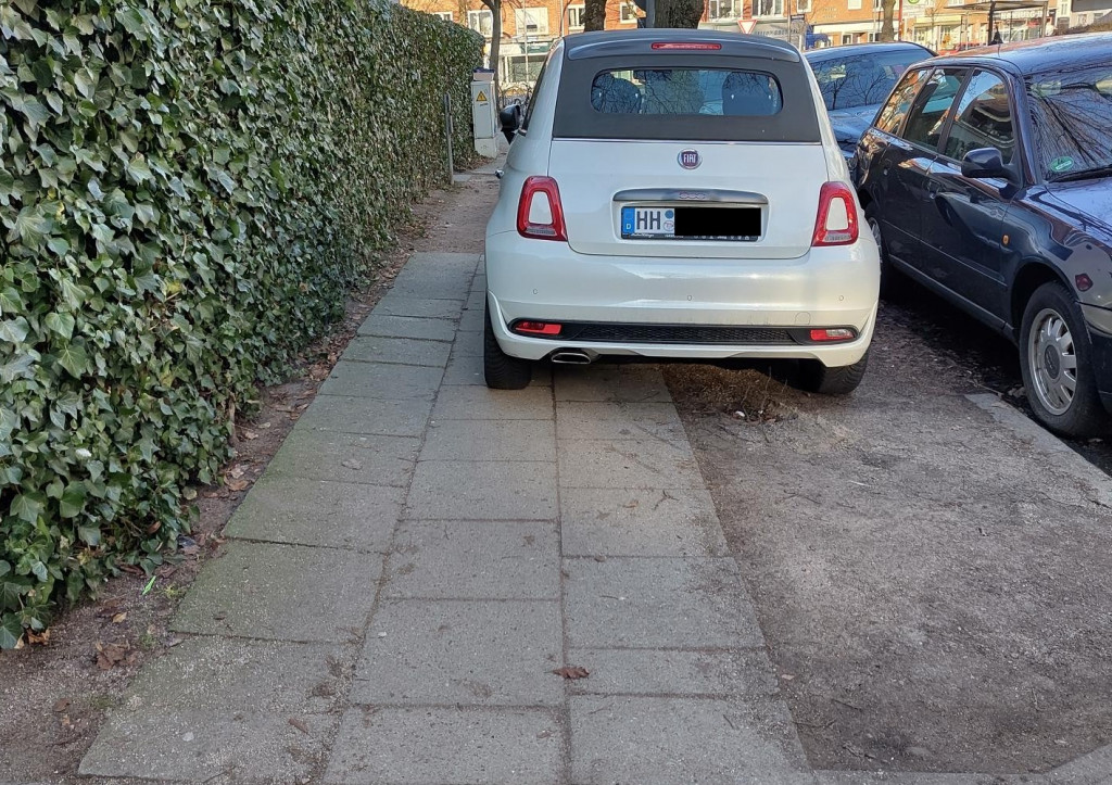 Nun könnte man das zugestellte Klohäuschen zugunsten des grenzwertig parkenden Fahrzeugs rechnen. Aber konsequenterweise hätte man dann das Klohäuschen versetzen müssen. In einer funktionierenden Stadt zumindest. Aber ihr ahnt es: das interessiert in Hamburg keine Sau.