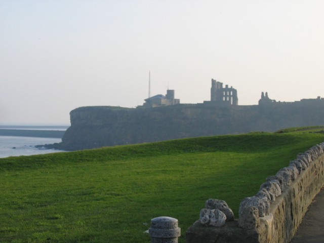 Grüne Wiese in Vorfergrund zum zerfallenen Schloß