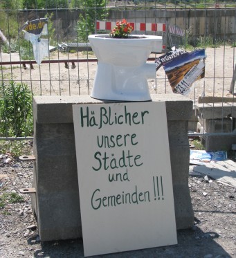 Und wenn man sich heute den Postplatz anschaut, so wird man diese Aussage auch nicht leugnen können. Leider stand dieses »Denkmal« nur für kurze Zeit, denn die Stadtverwaltung hat dieses Klo »sichergestellt«. So richtig zum Politikum wurde die Toilette, als sich Schauspieler Uwe Steimle reingehangen hat und bei der Stadtverwaltung die (Achtung Neudeutsch:) »Installation« gegen Lösegeld abgeholt hat. Und seit dem macht dieses Klo nahezu jeden Tag irgendeine Schlagzeile.
