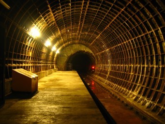 Blick in die Röhre der gelben U-Bahn in Newcastle:
