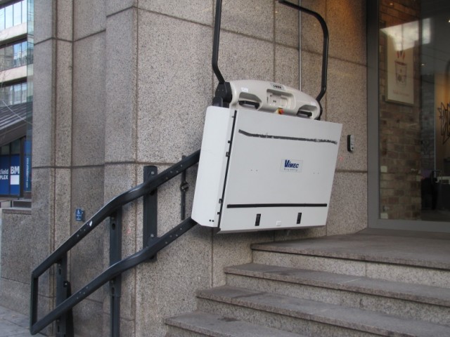 Da die Aufzugslösung wegen der Neigung und den Senkkästen nicht möglich erscheint und eine Fähre wohl aussichtslos ist, entstand die Idee eines Schrägaufzugs. Bedingt durch die begrenzte Deckenhöhe ist ein geschlossener Schrägaufzug wie am S-Bahnhof Innsbrucker Platz (oder Hamburg Hauptbahnhof, Gleis 3/4 der S-Bahn) nicht möglich. Wenn dann wäre etwas offenes notwendig. Eine Inspiration aus London:
