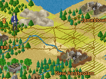 Der Grundgedanke war die Besiedelung des amerikanischen Kontinents und der daran abschließende Unabhängigkeitskrieg. Dazu wurden Kolonien gegründet, es wurden Gebäude errichtet, gegen Ende auch Fabriken. Dann gab es Ureinwohner und andere andere Kolonialmächte, mit denen man das Land teilen mußte. Und einen bösen König, der einem die Arbeit in den Kolonien ständig erschwerte. Also galt es, sich möglichst schnell durch Handel unabhängig zu machen.