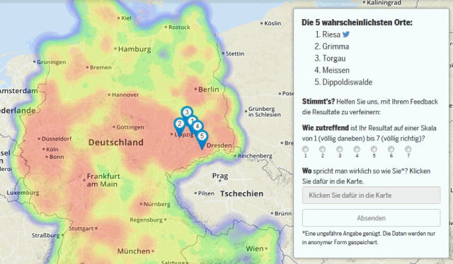 Im Spiegel gibt’s es das ganze nun Reverse: Anhand von 24 Fragen versucht er den Tester zu orten. Mich scheint er ziemlich gut zuzuordnen:
