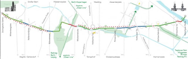 Nach der kontroversen Debatte um den Radschnellweg in den Südosten, gibt es nun eine weitere Vision für einen Radschnellweg durch die Innenstadt zwischen Warschauer Brücke und Bahnhof Zoo: