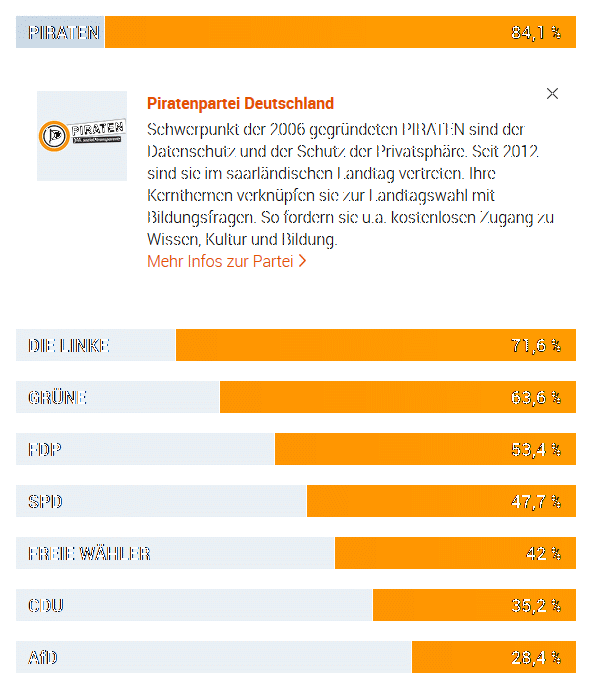 Nutzung des Bildes »Wahl-o-mat Saarland - Mein Ergebnis« in Beiträgen