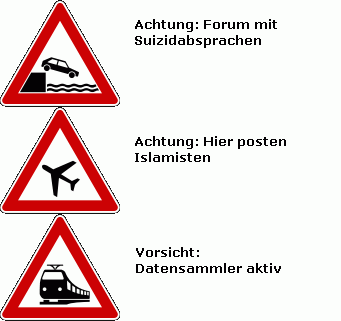 Eine schöne Parodie auf das LEYENhafte Stopschild gibt es im aktuellen Titanic-Heft: Der Internetverkehr wird beschildert. Meine Favoriten: