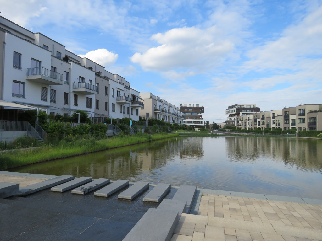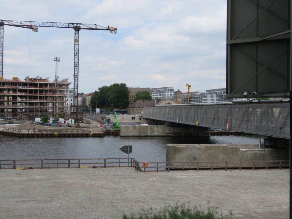 An dem Tage sah ich keine Bauarbeiter. Auf mich wirkte die Baustelle nicht gerade aktiv bewirtschaftet. Die Webseite des Projektes zeigt den letzten Stand datiert von Mai. Keine Ahnung, was da noch so passiert. Die Sorge der Anwohner war damals die dichte und hohe Bebauung, stattdessen müssen sie nun mit einer Baugrube und gesperrtem Ufer lange Zeit leben.