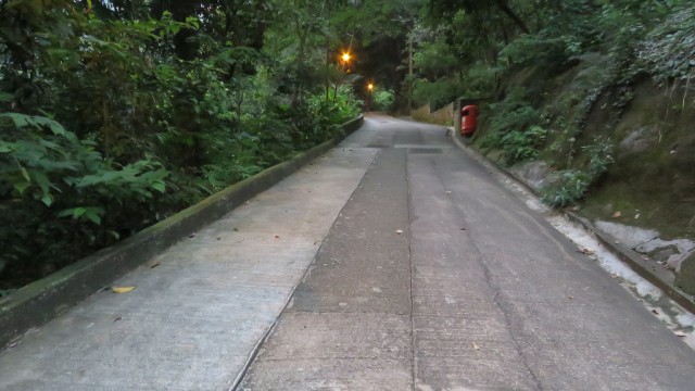 Den Abstieg wagten wir zu Fuß über die Old Peak Road, die nach der Bahn für motorisierte Fahrzeuge gebaut wurde. Beides löste damals einen Bauboom auf dem Berg aus und glaubte, dass die Straße die Bahn ablösen würde. Zum Glück hat sich dies nicht bewahrheitet. Für den Weg braucht man durch den Anstiegswinkel auch hinab einiges an Muskelkraft, wie wir schnell merken mussten.