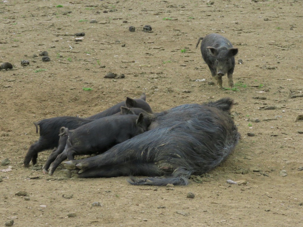 Wir hatten eine große Terrasse und an beiden Vormittagen sehr schönen Sonnenschein. Wir genossen das Frühstück draußen. Dabei wurden wir von einem Huhn beobachtet. Wir warfen einige Paprikakerne zu – und es pickerte los.