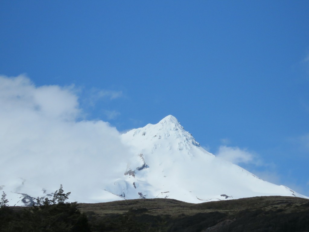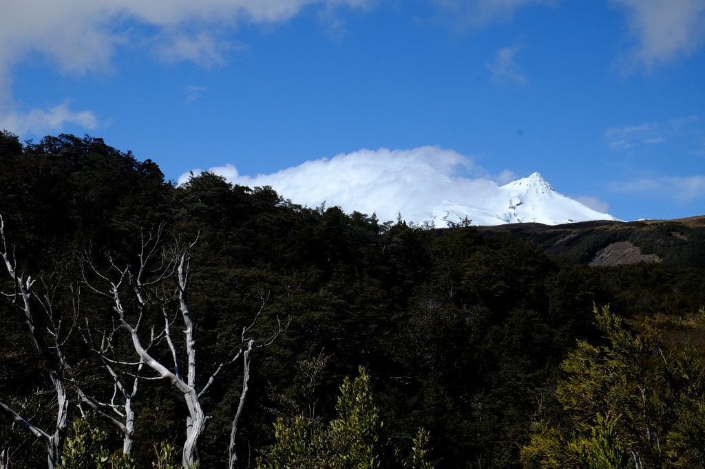 Zur Halbzeit des Weges passierten wir eine Lichtung. Mit einem gigantischen und freiem Blick auf den Mount Ruapehu: