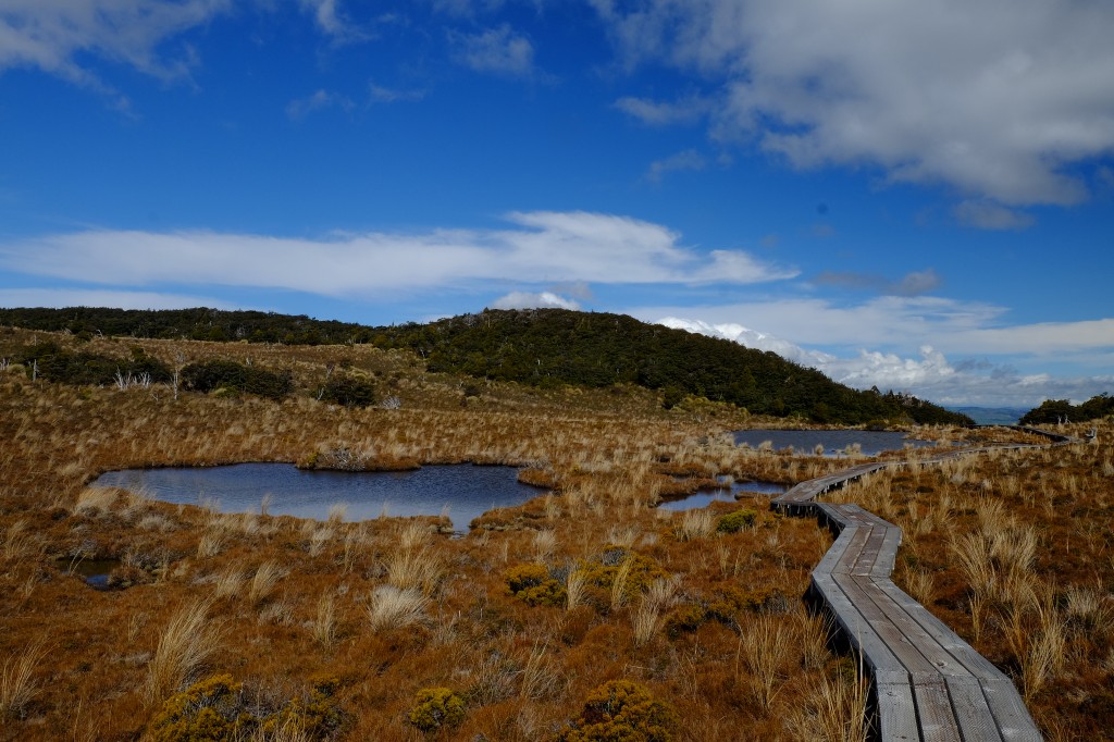 Unser nächstes Teilziel ist Raurimu und die dortige Spirale. Damit die Eisenbahn die Hochfläche des National Parks erreichen kann, muss binnen sechs Kilometern ein Höhenunterschied von über 200 Meter zurückgelegt werden. Diese wurde durch eine recht originelle Schleife gelöst – inklusive zweier Tunnel: die Raurimu-Spirale.