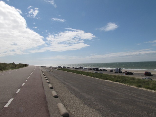Ich folge den Küstenverlauf der dritten Insel. Anfänglich sehr gute Radwege. Dann werden sie steinig. Ein kleiner Abschnitt erfolgt am Außendeich. Dann kommt Sand. Und ein Anstieg mit 25% Steigung!