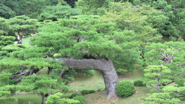 Der Name leitet sich vom chinesichen Wort für Kastanie ab, doch davon gab es wohl keine 10 Stück mehr. Überwiegend gibt es hier Kiefern zu begutachten. Kiefern, die liebevoll mit einer kleinen Schere zurecht geschnitten werden. Als wir es in den Bäumern klackern hörten, waren ein Trupp gerade bei der Baumpflege.